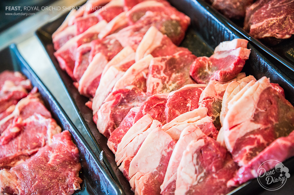 มุม BBQ Grill นอกจาก Seafood ก็ยังมีเนื้อต่างๆอย่าง เนื้อหมูคุโรบูตะ, เนื้อวัวเป็นเนื้อออสเตรเลีย มีให้เลือกทั้ง เซอร์ลอยด์, ริบส์ อาย และเนื้อแกะครับ ตรงนี้ก็ตักใส่จานแล้ววางป้ายเบอร์โต๊ะเช่นกันจ้า